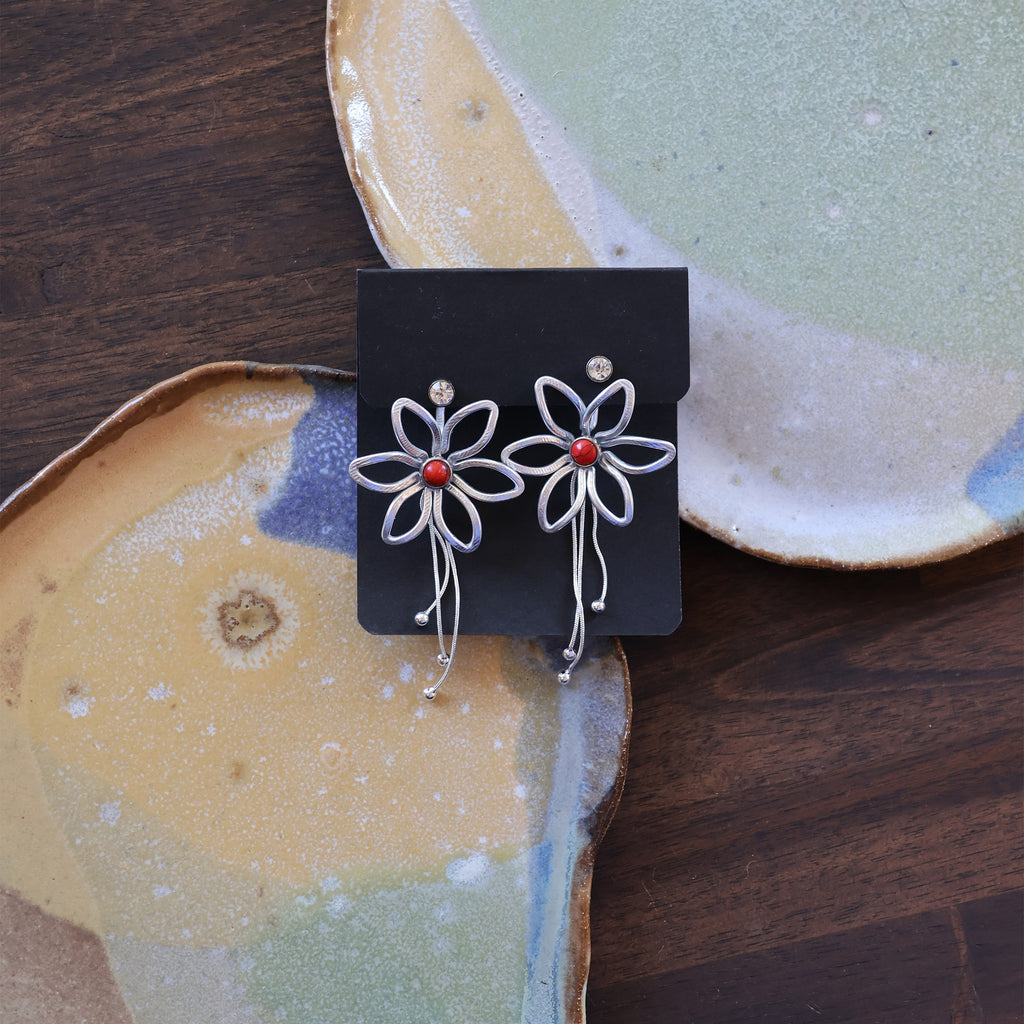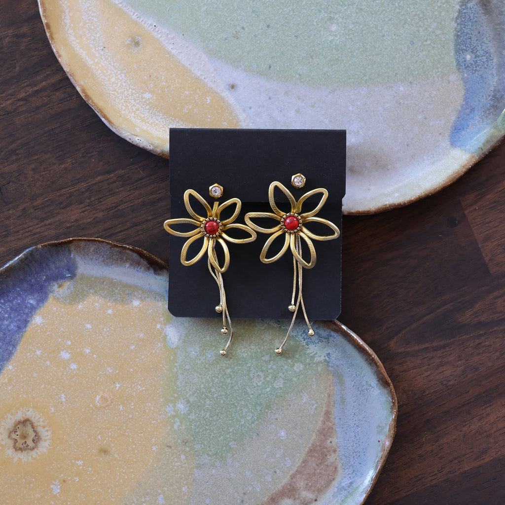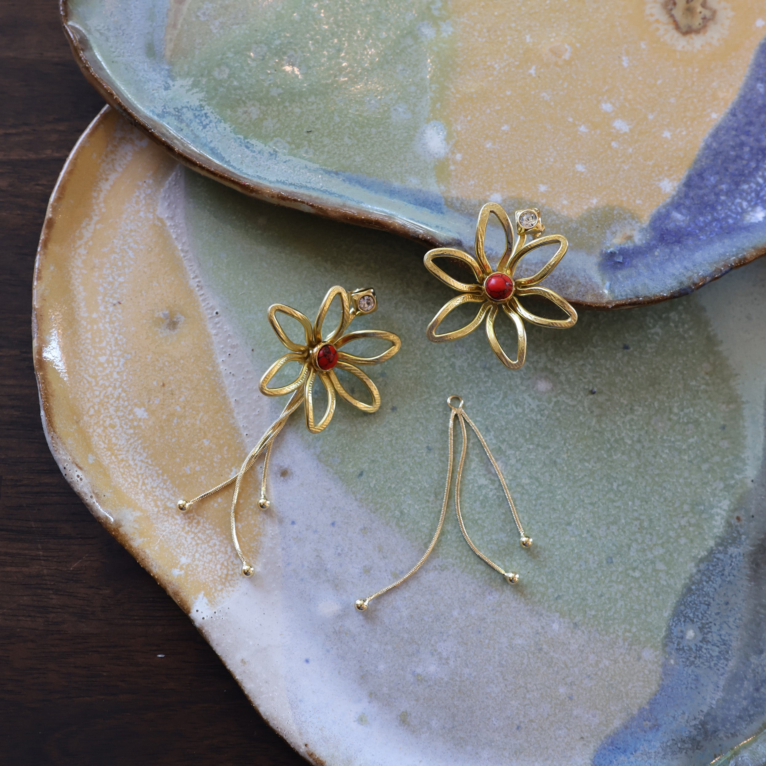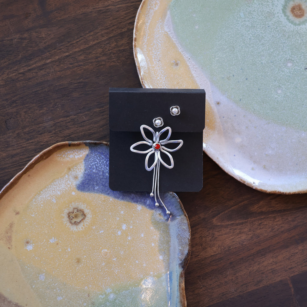 Just One Earring option: One handmade earring jacket, 3 studs (1 pair of matching studs and 1 extra for the flower center) and a single removable backing chain.