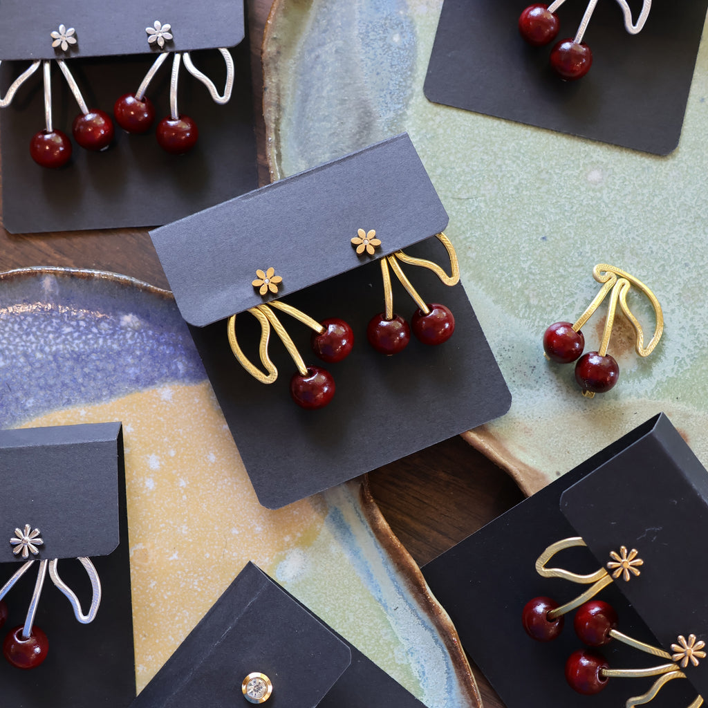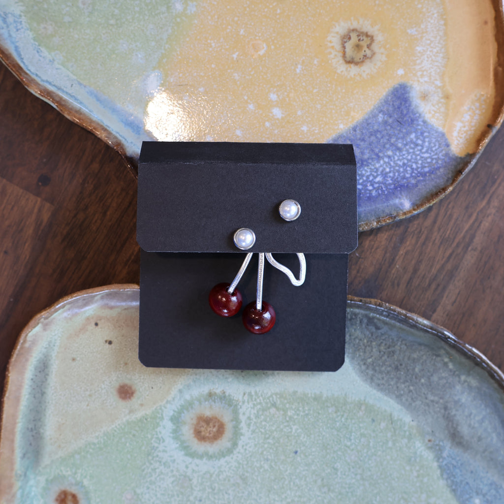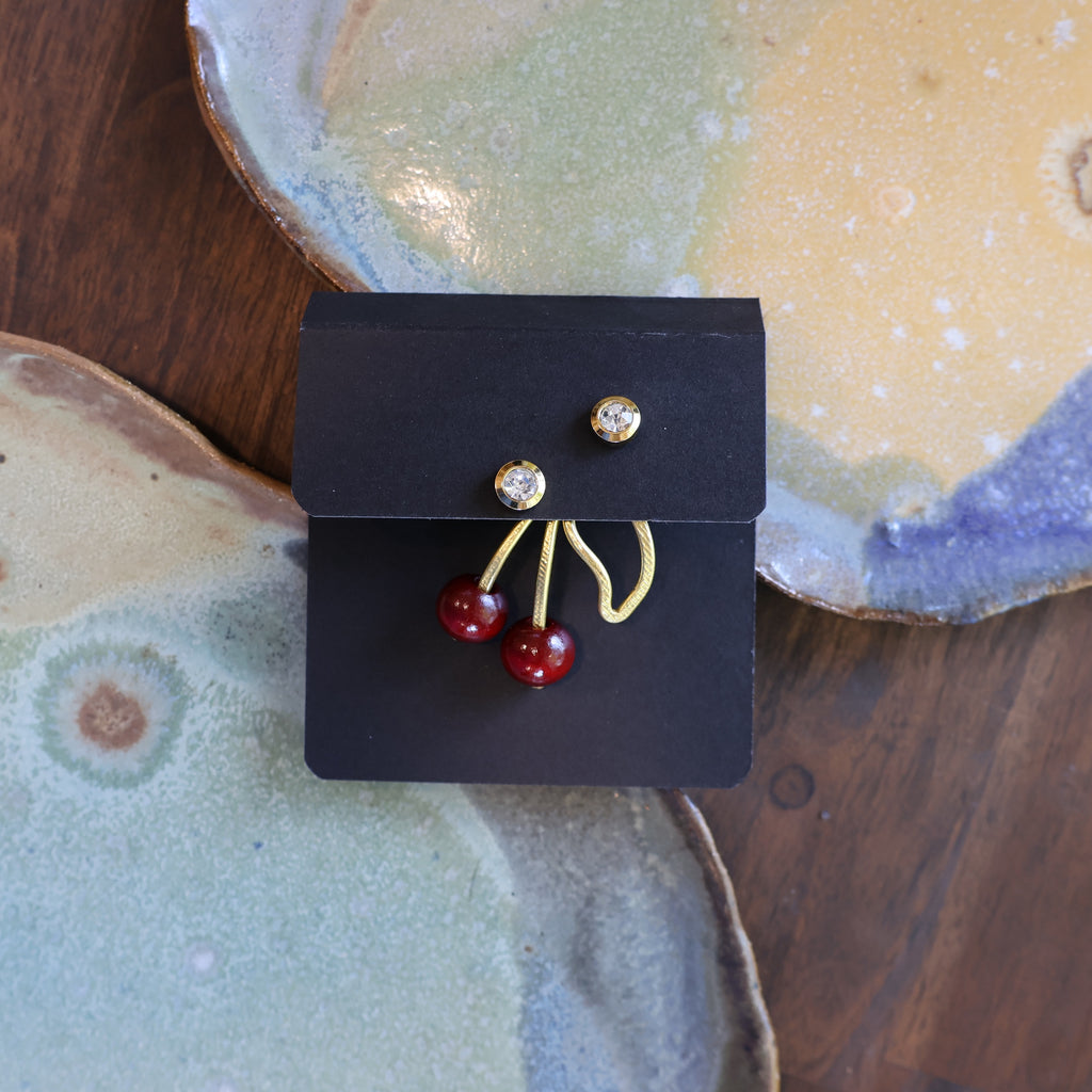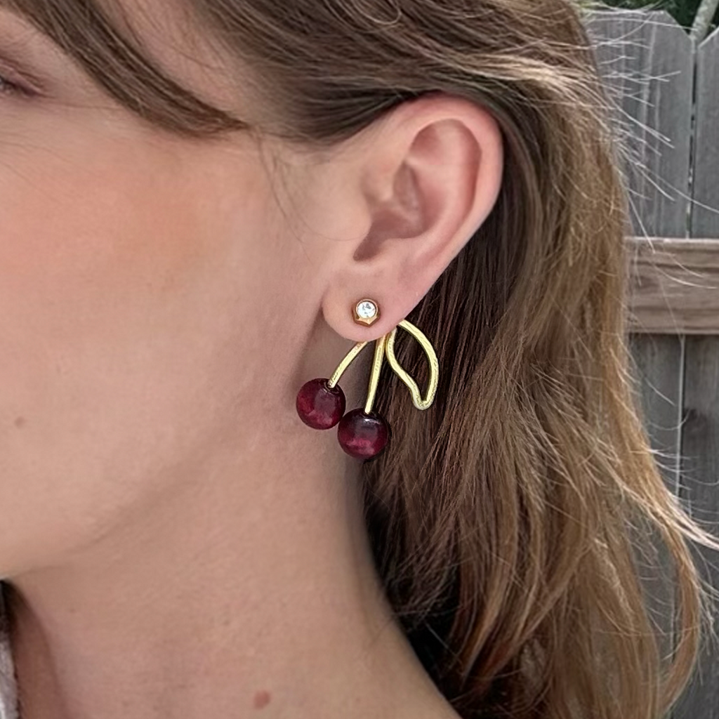 Adorable cherry earring jackets that hang behind your ear and work with ANY stud earrings you own!