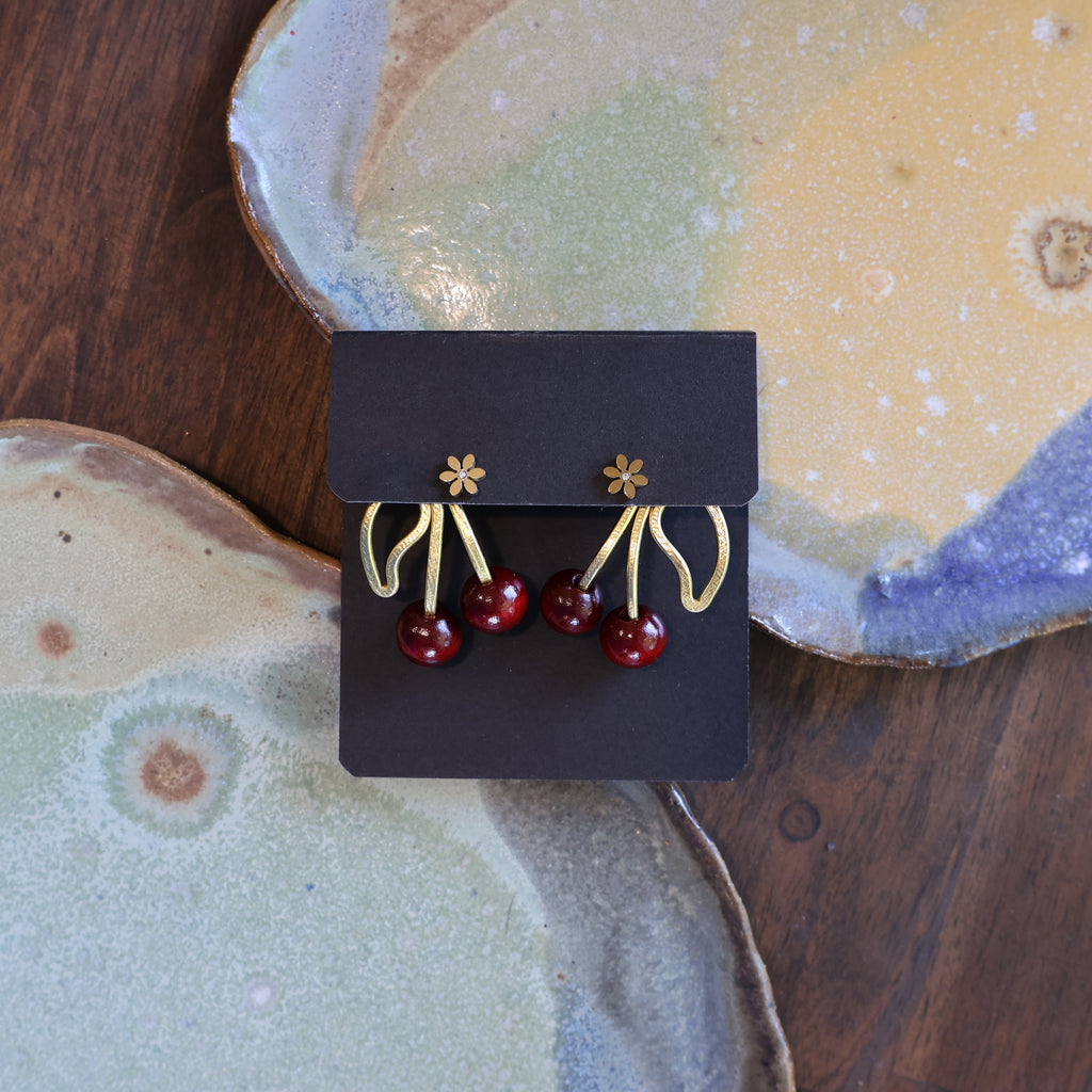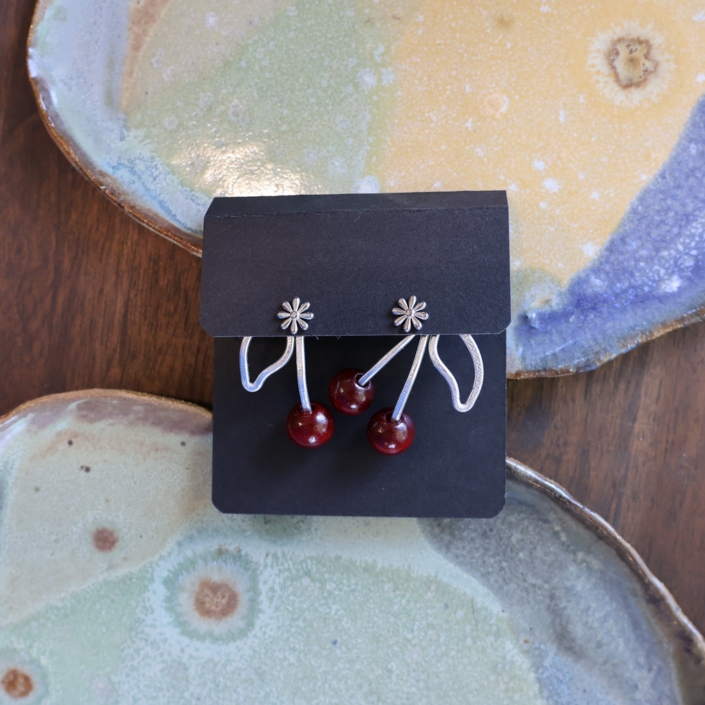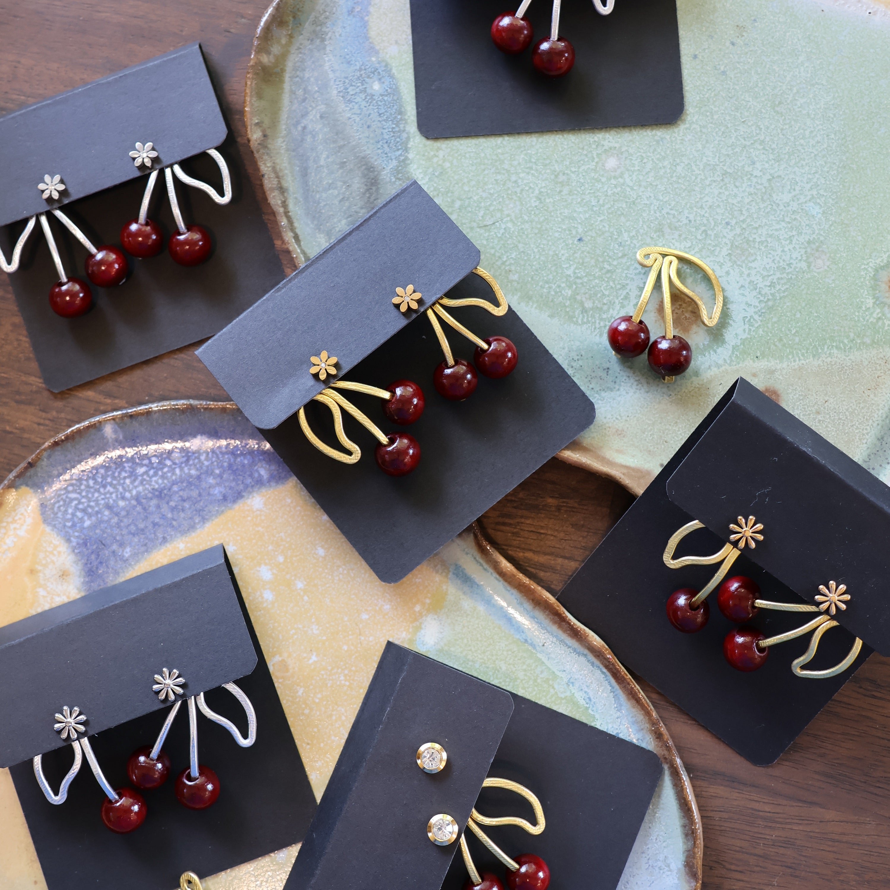 Adorable cherry earring jackets that hang behind your ear and work with ANY stud earrings you own!