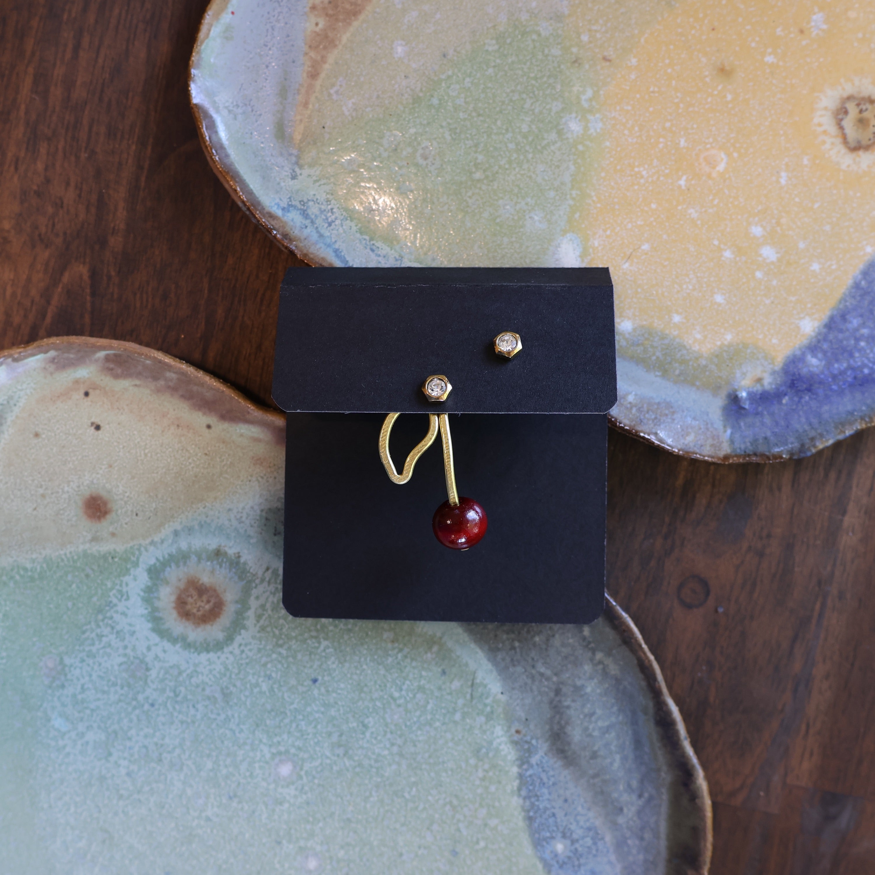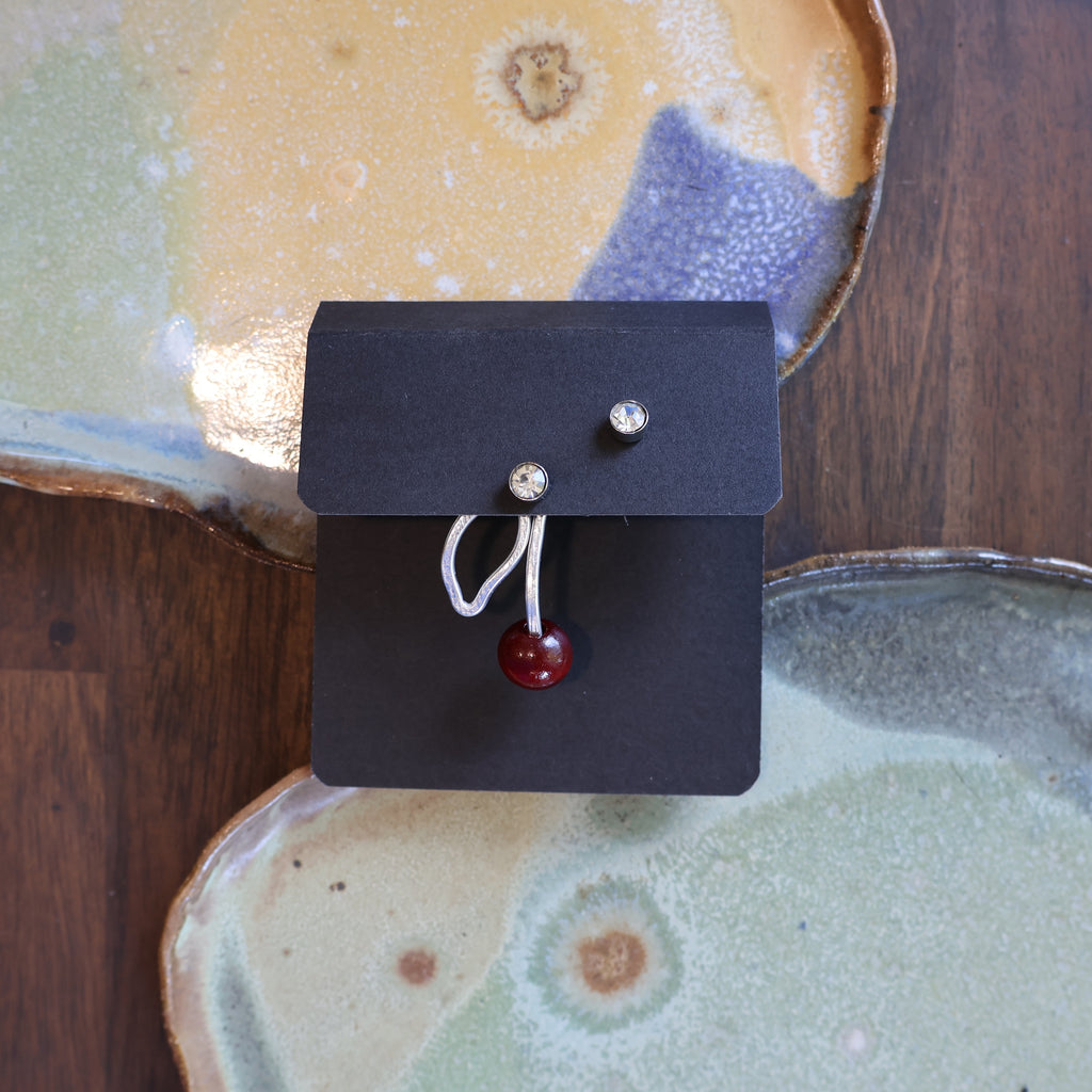 - Style 4: Single Cherry - One single-stem jacket (right ear) + studs