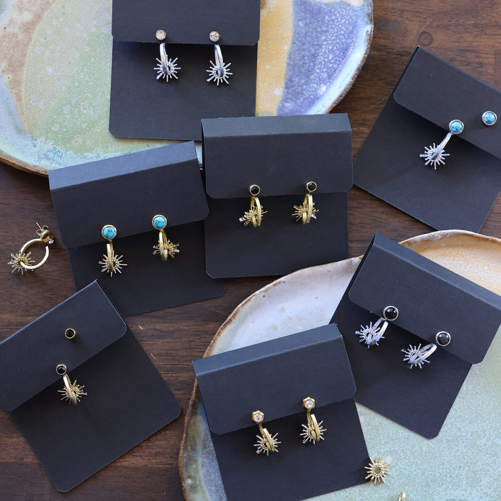 Every purchase includes a pair of surprise hypoallergenic studs hand-selected to complement your earring jackets! Since we don't make the studs ourselves, we highly recommend those with sensitive ears or extreme allergies using their own trusted studs.