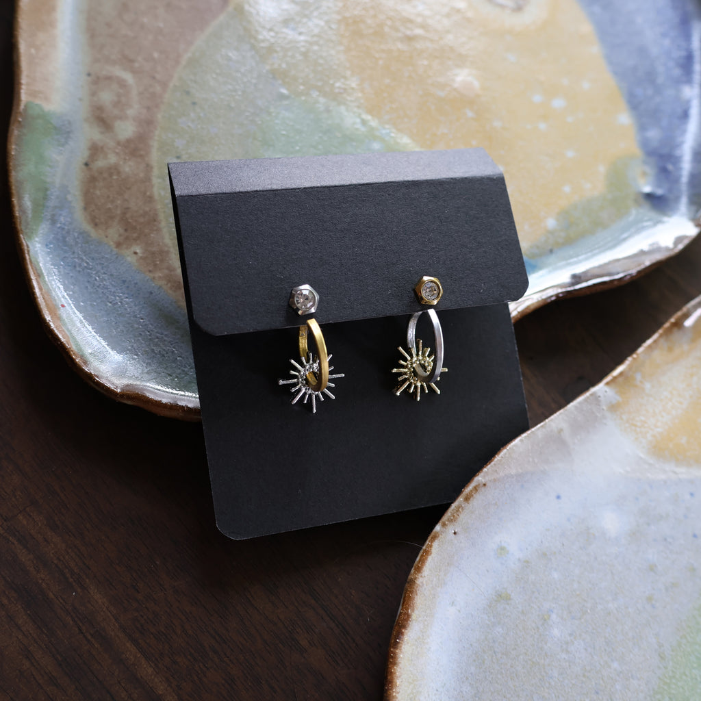 Mixed Metal Pair Option: Includes one silver and one gold of each — two handmade earring jackets, one pair of hypoallergenic studs, and two removable charms.