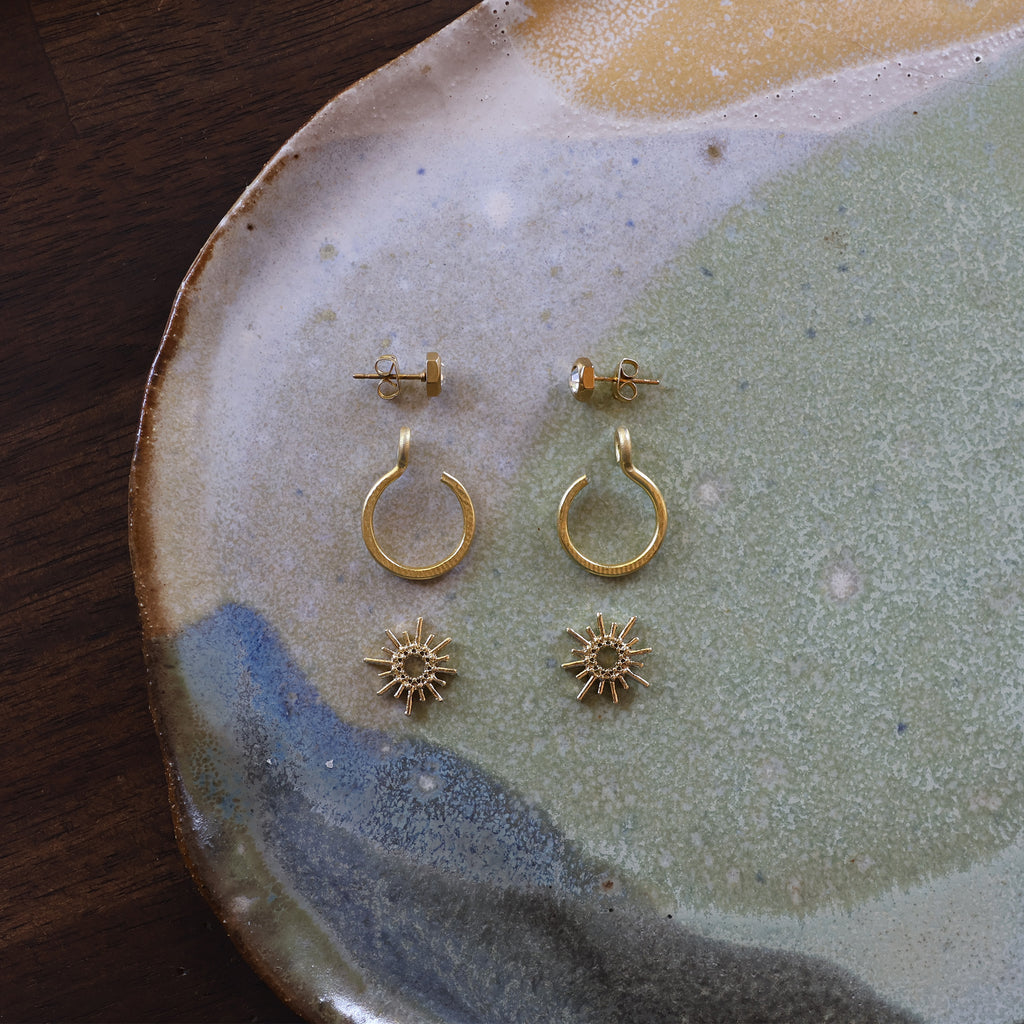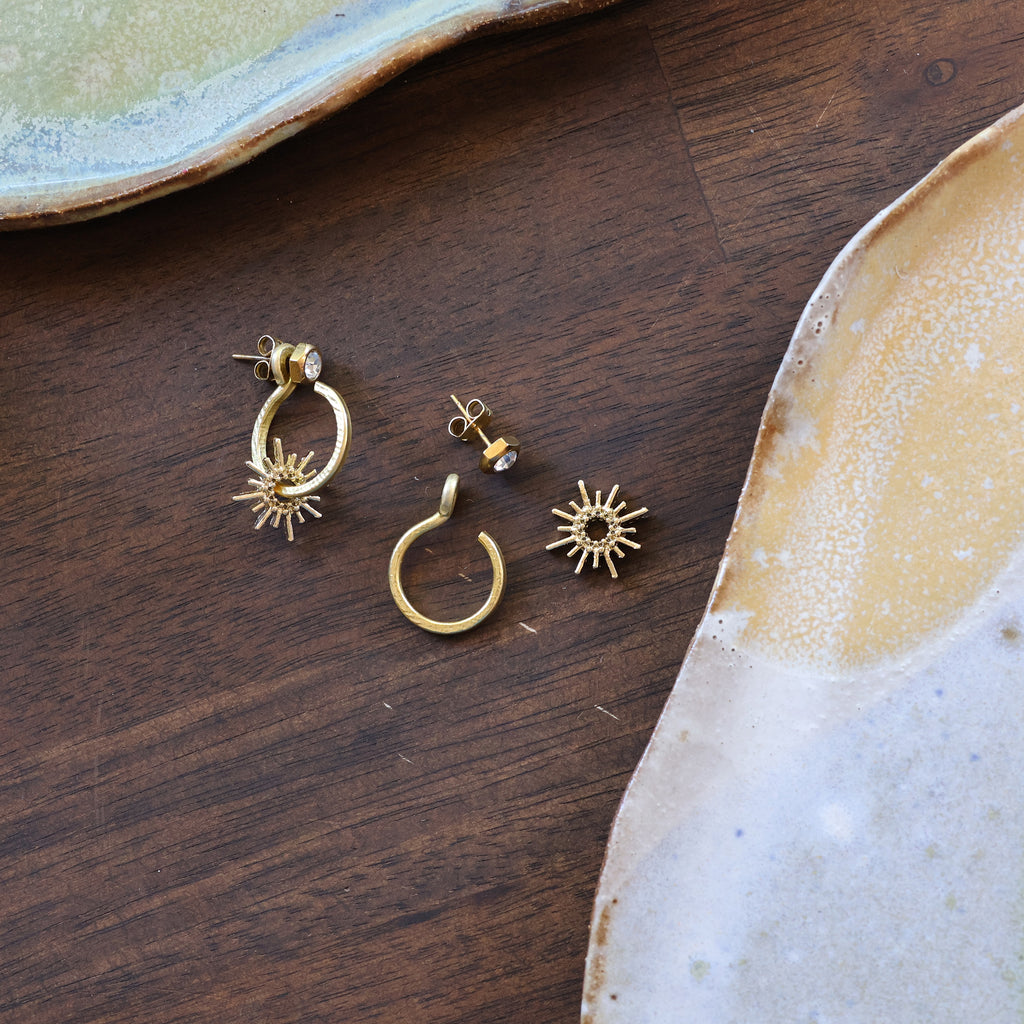 The Charmed Hoop turns any stud into a softly rounded hoop you can personalize endlessly. Each comes with a beautiful starburst charm to get you started, but you can hang any charm or chain with a finding over 2.5mm to make them unique to you.