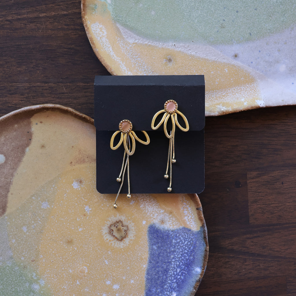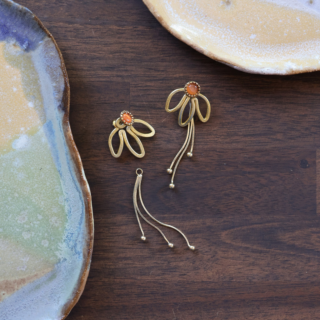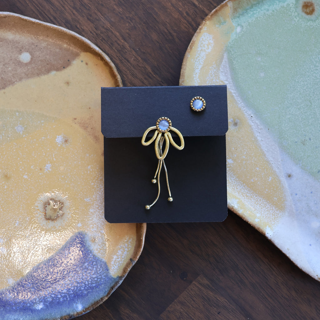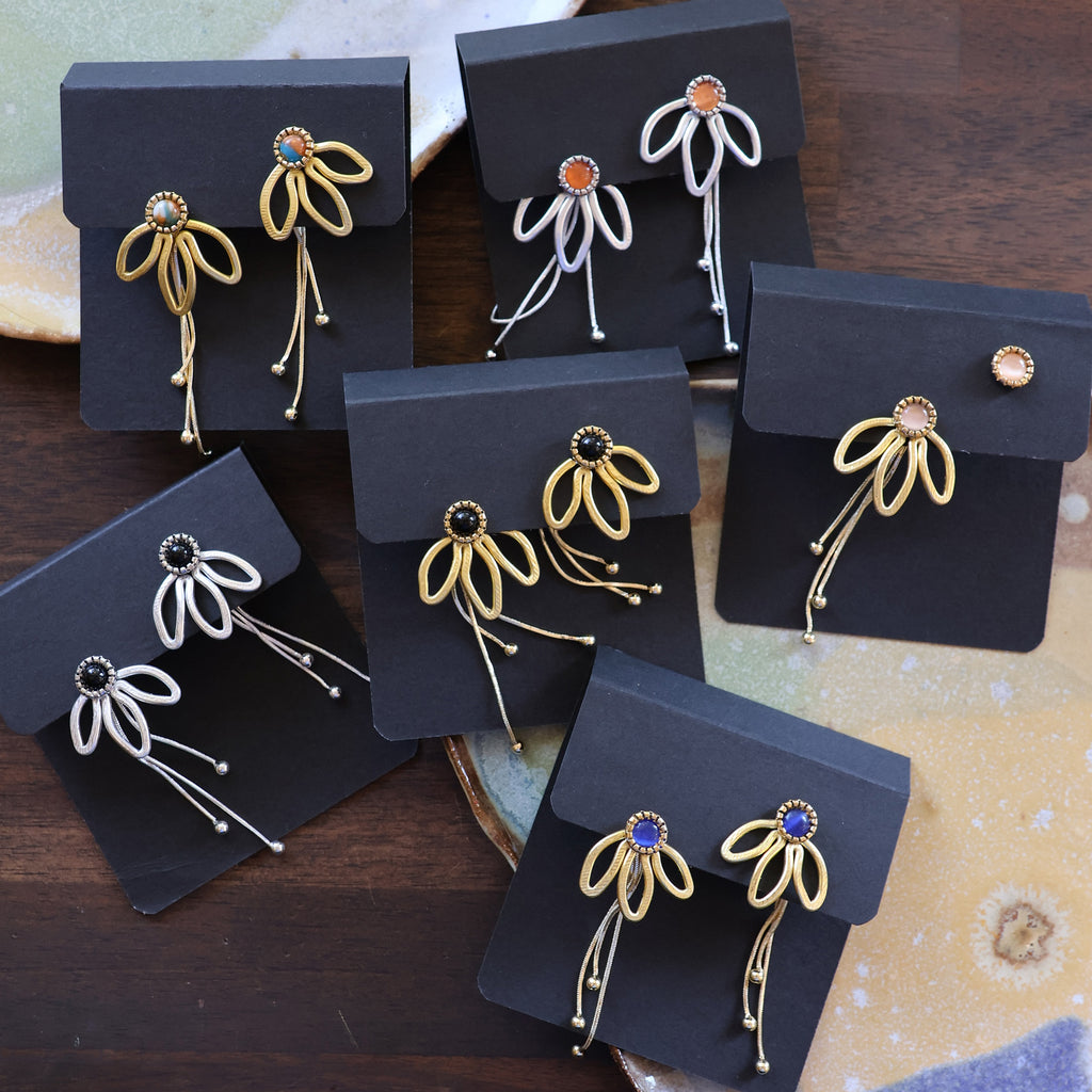 The Daisy also shares a family resemblance to The Petal, a longtime favorite in the shop, but it’s smaller, a bit droopier, and designed to be worn either in front of or behind the ear. The Petal is larger and hangs strictly behind the ear, while the Daisy offers both options for styling.