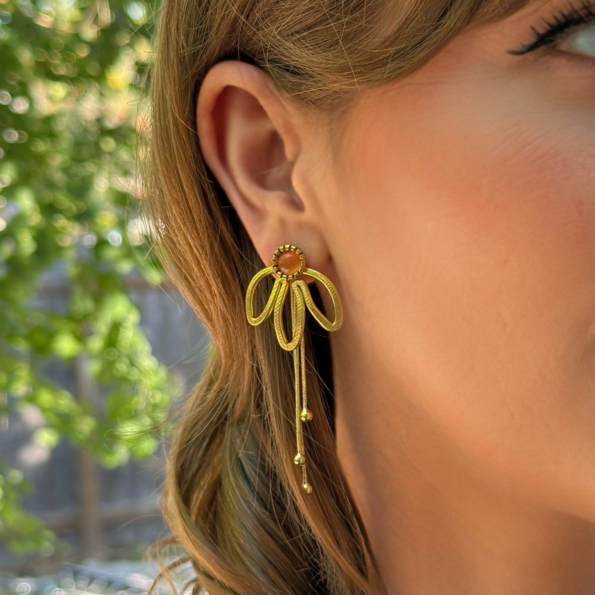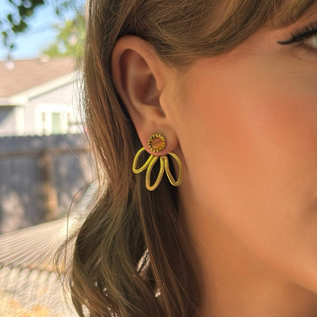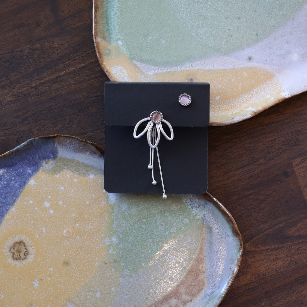 The Daisy also shares a family resemblance to The Petal, a longtime favorite in the shop, but it’s smaller, a bit droopier, and designed to be worn either in front of or behind the ear. The Petal is larger and hangs strictly behind the ear, while the Daisy offers both options for styling.