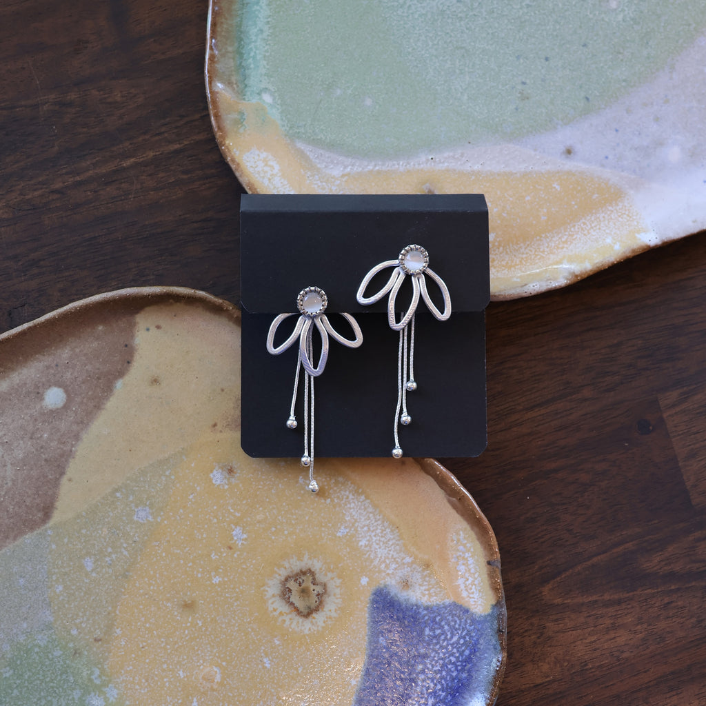 The Daisy takes everything you love about the Coneflower and adds a playful twist. Each one blooms around a bold 8mm stud, with three delicate ball-ended chains that sway from beneath. Wear the Daisy with or without the chains depending on your mood. They’re simple, happy, and add the sweetest bit of movement when you do.