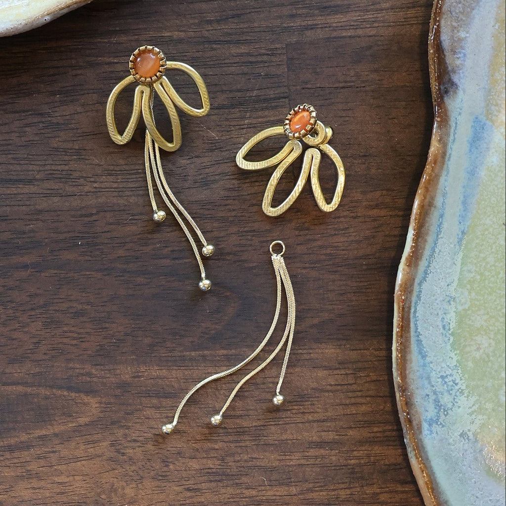 Just One Earring option: One handmade earring jacket, one pair of hypoallergenic studs, and a single removable backing chain.